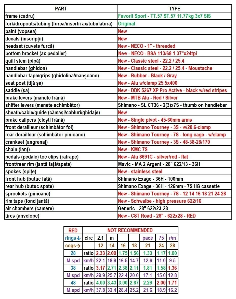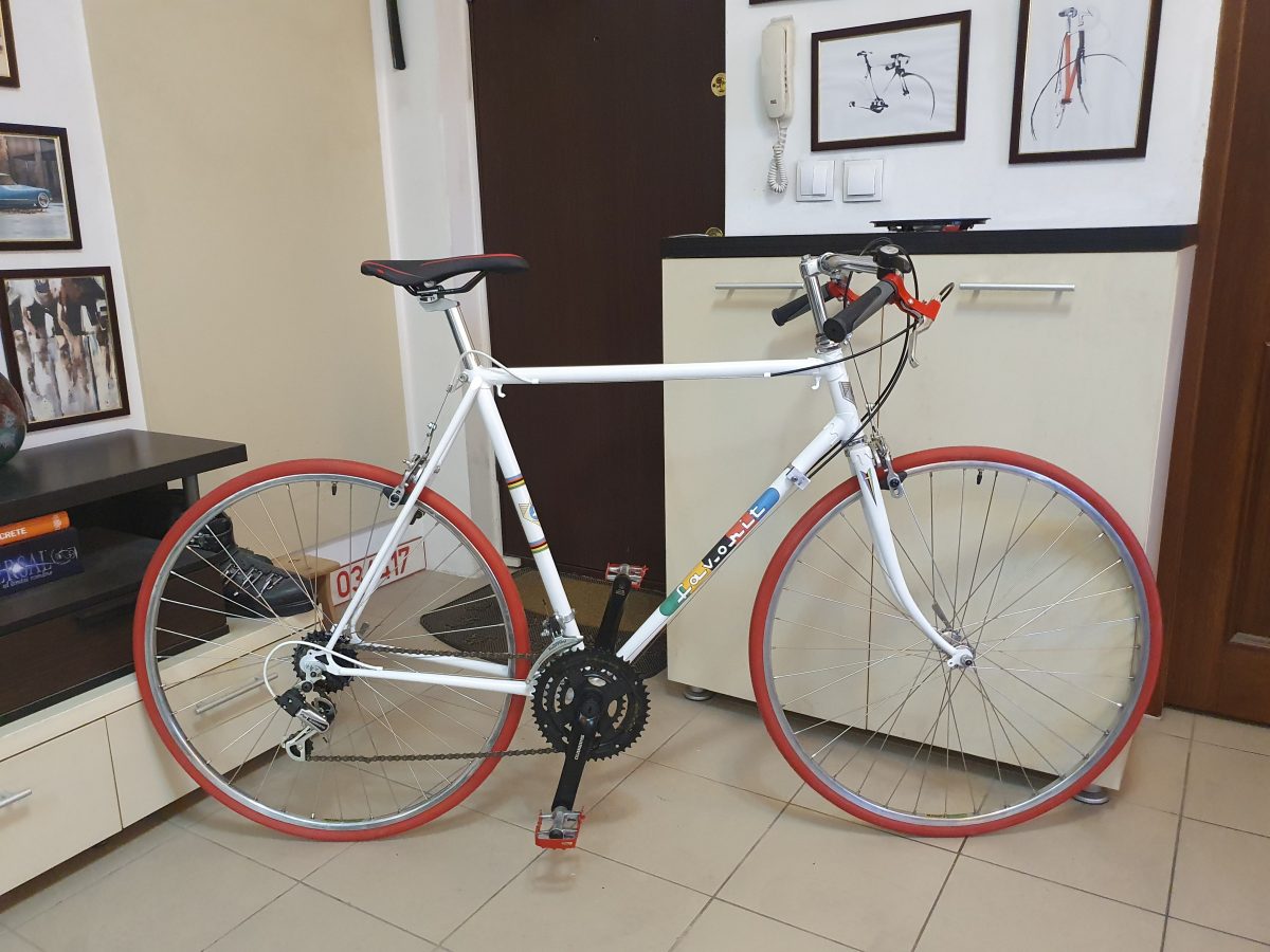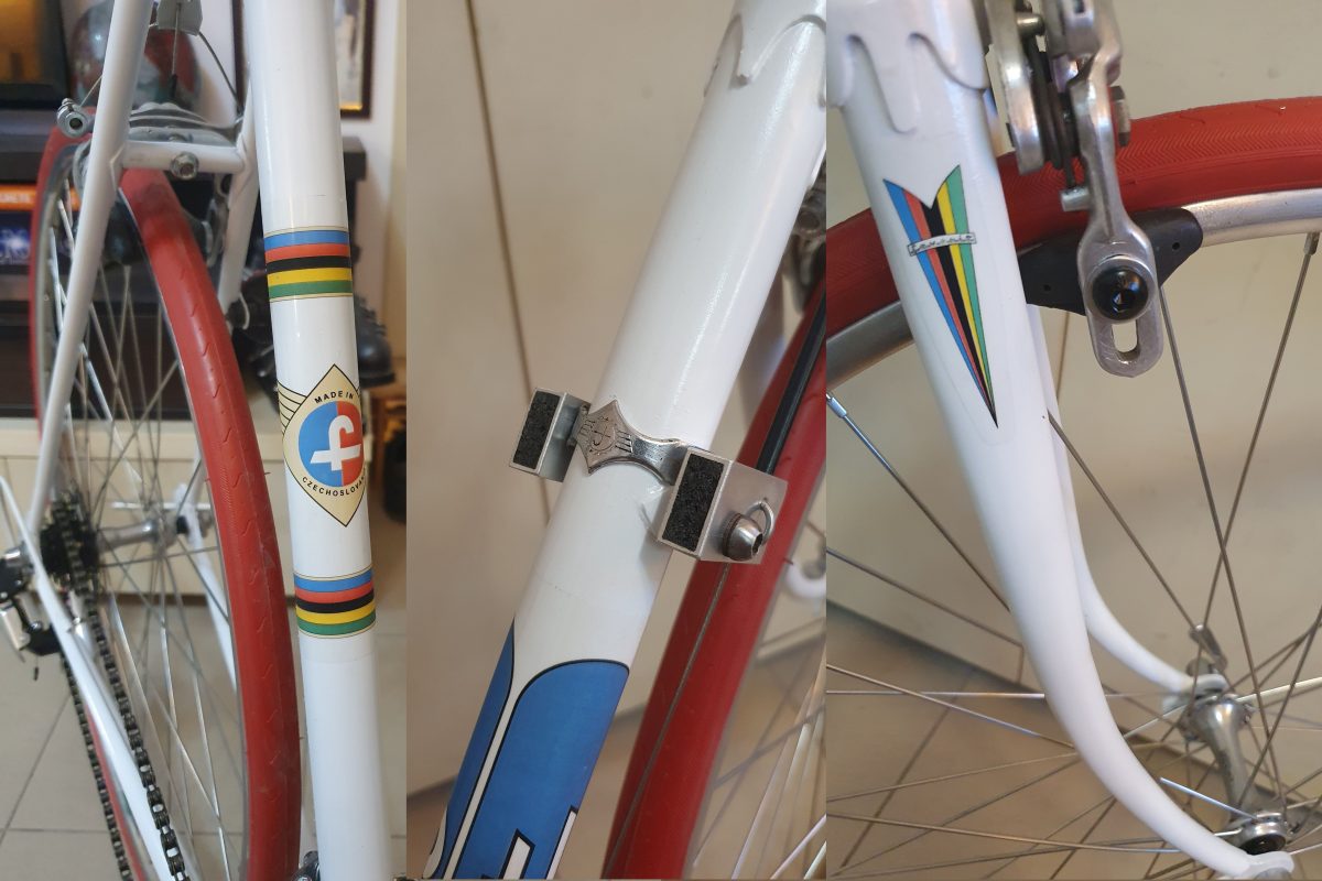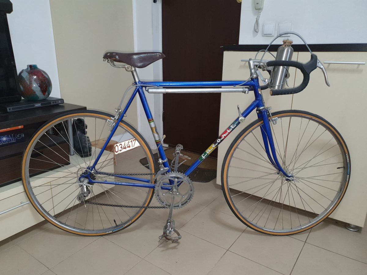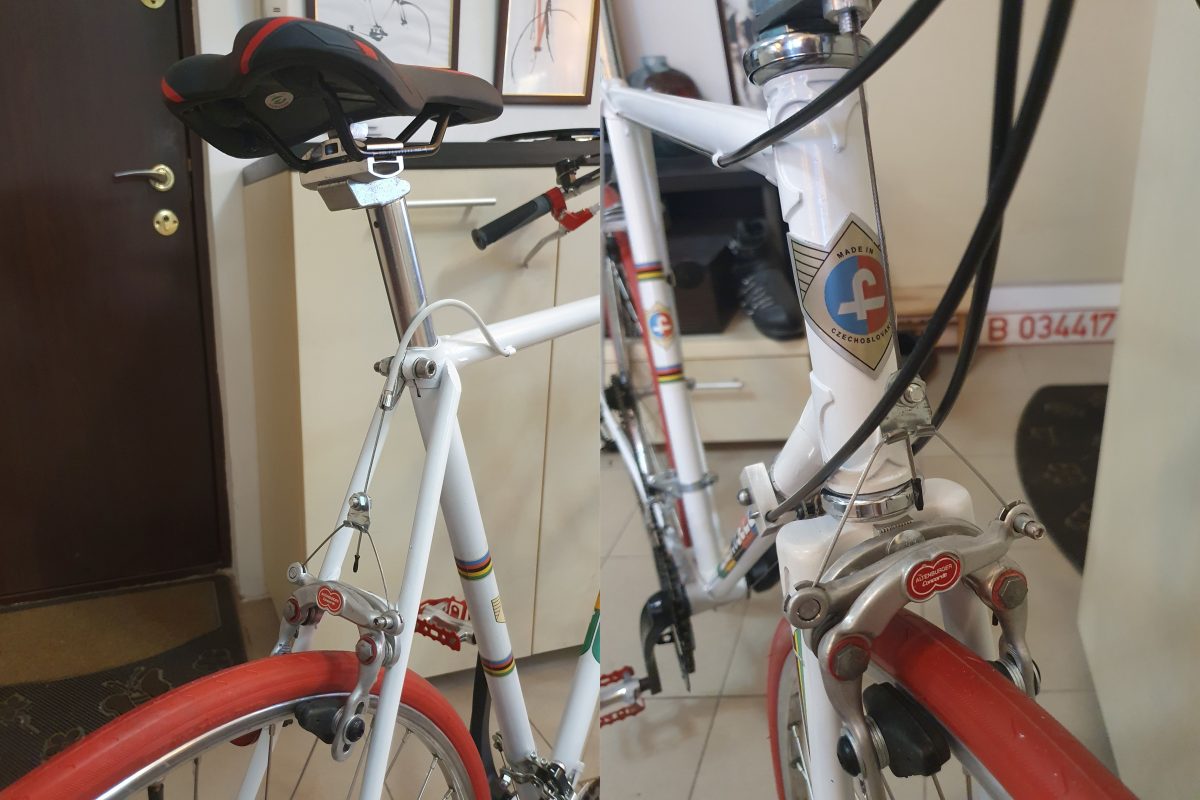 Favorit Sport – Made in Czechoslovakia – 1962 – cadrul. Completat cu roți din anii optzeci iar restul componentelor, noi sau moderne. Există o poză a cadrului în starea în care era când l-am cumparat. A trecut prin câteva etape – curățare până la metal, două straturi de grund, trei straturi de vopsea și un strat de lac. Pentru conformitate, am adăugat o poză a altui exemplar din colecție, fix același cadru, tot din 1962, dar în echipare absolut originală. Asta e.