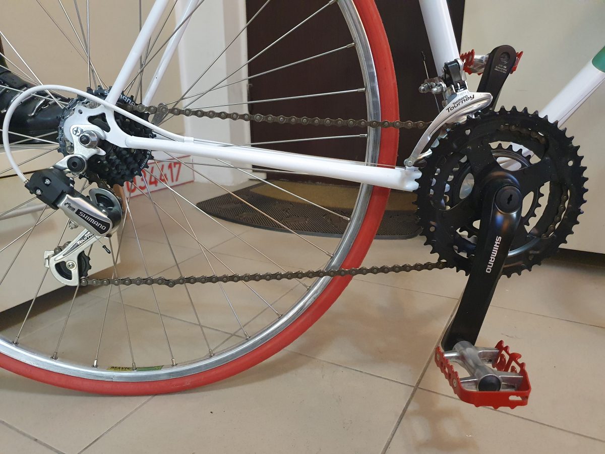 Cadru curatat la metal, doua straturi de grund, trei straturi de vopsea, un strat de lac incolor. Roti cu jante Mavic M2 Argent si butuci Shimano Exage, transmisie Shimano Tourney – noua, restul specificatiei intr-una dintre ilustratiile atasate. Cateva fotografii suplimentare pe fb sau cursiera.ro. Numai si numai si numai predare personala.